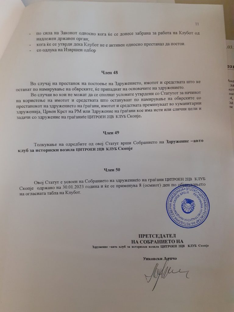 Полно име: “Здружение – авто клуб за историски возила ЦИТРОЕН 2ЦВ КЛУБ Скопје”