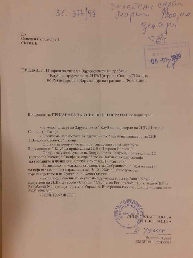 Полно име: “Клуб на пријатели на 2цв (Цитроен-Спачек)” – Скопје